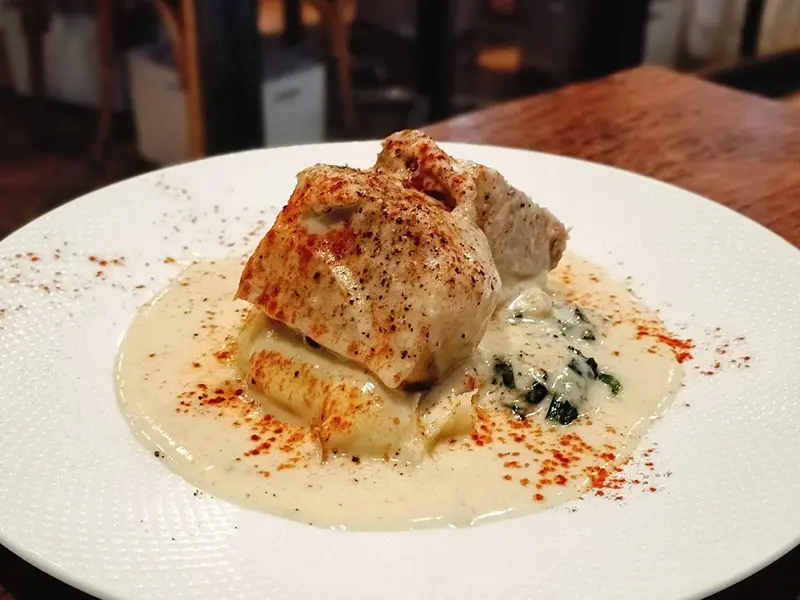 三元豚肩ロース肉のヴェネト風クリーム煮込み