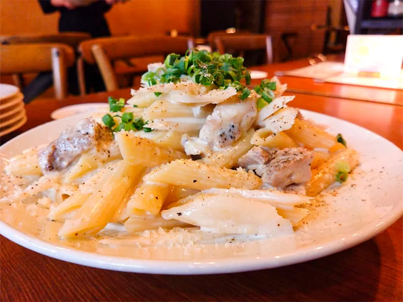 ●鶏もも肉とゴボウのクリームソース ペンネ